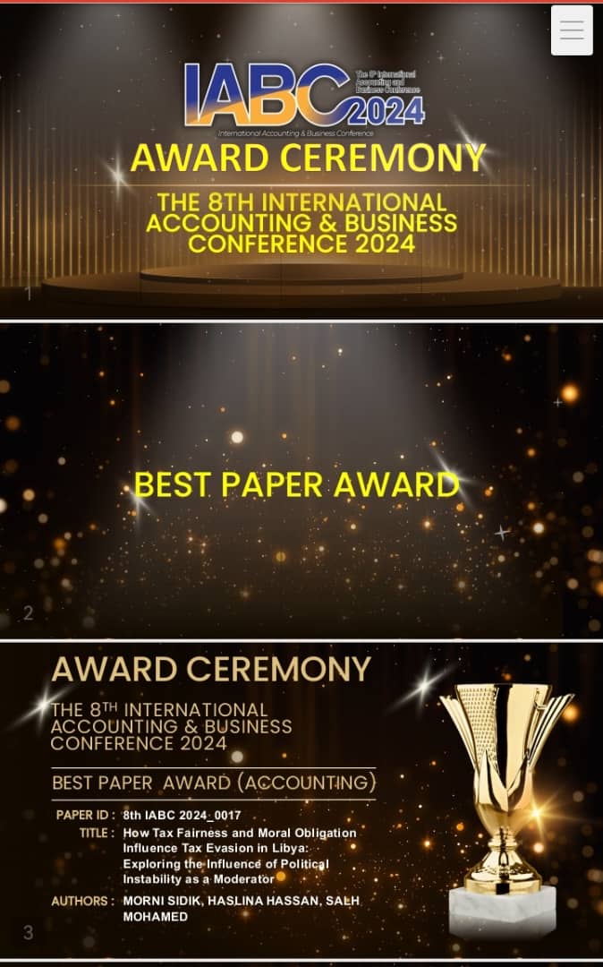 - Overall BEST PAPER AWARD 2024, The 8th International Accounting And Business Conference 2024 (IABC 2024)